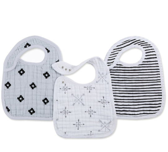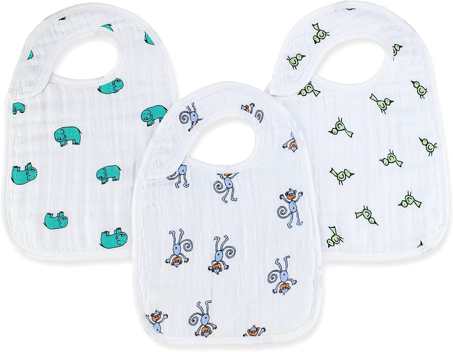 Our 100% cotton muslin classic snap bib features three snaps conveniently located in the front for an adjustable fit and easy fastening. And not to worry, the messier it gets, the better. We pre-wash our muslin so it's super soft from the start and stays that way wash after wash. Finally, a bib that grows with your baby and lasts through washes! Includes three prewashed 9" x 12" muslin bibs, made of three layers of 100% viscose made from bamboo.