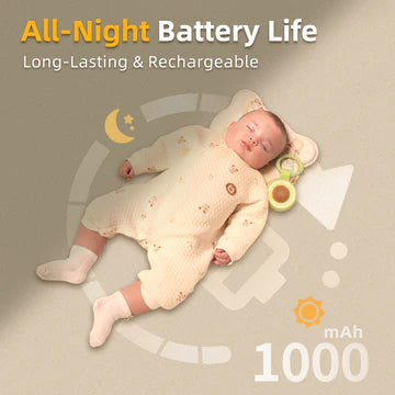 Soothing light with 3 gentle modes (dim, breathing, bright) helps babies sleep soundly. Runs up to 16 hours without the light or 10 hours with it on full—ideal for travel, naps, or all-night use. Recharge easily with the included Type-C cable.
