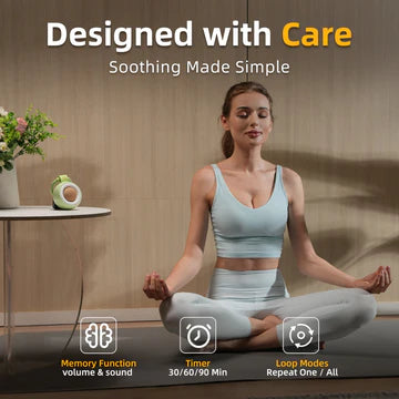 Automatically remembers your last sound and volume settings, so you don’t have to. Set auto-off timers (30/60/90 min) and toggle between single-track or playlist loops to match your baby’s sleep routine. The travel sound machine that fits seamlessly into your life.