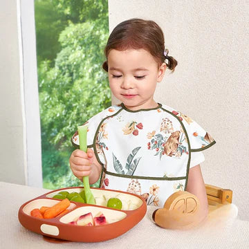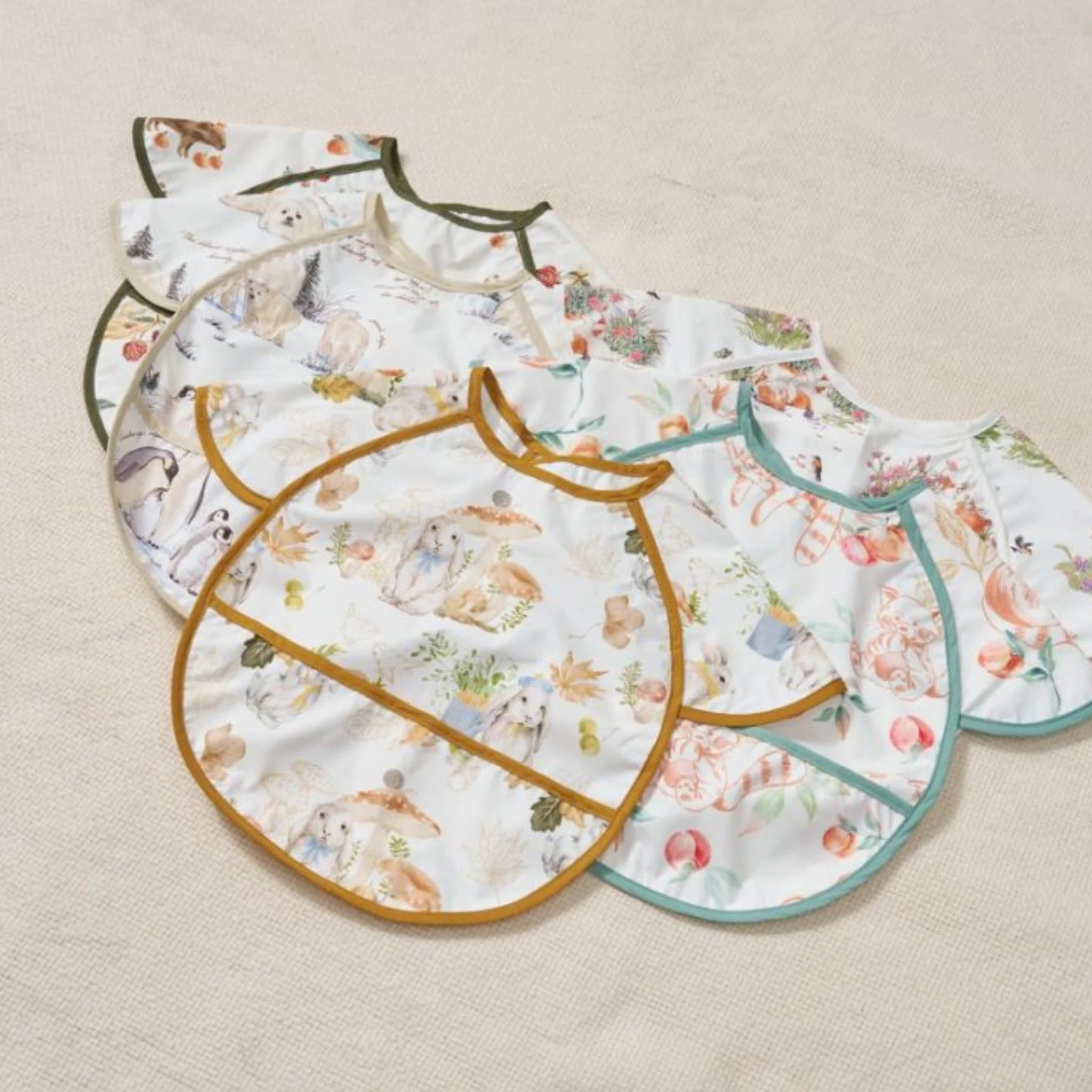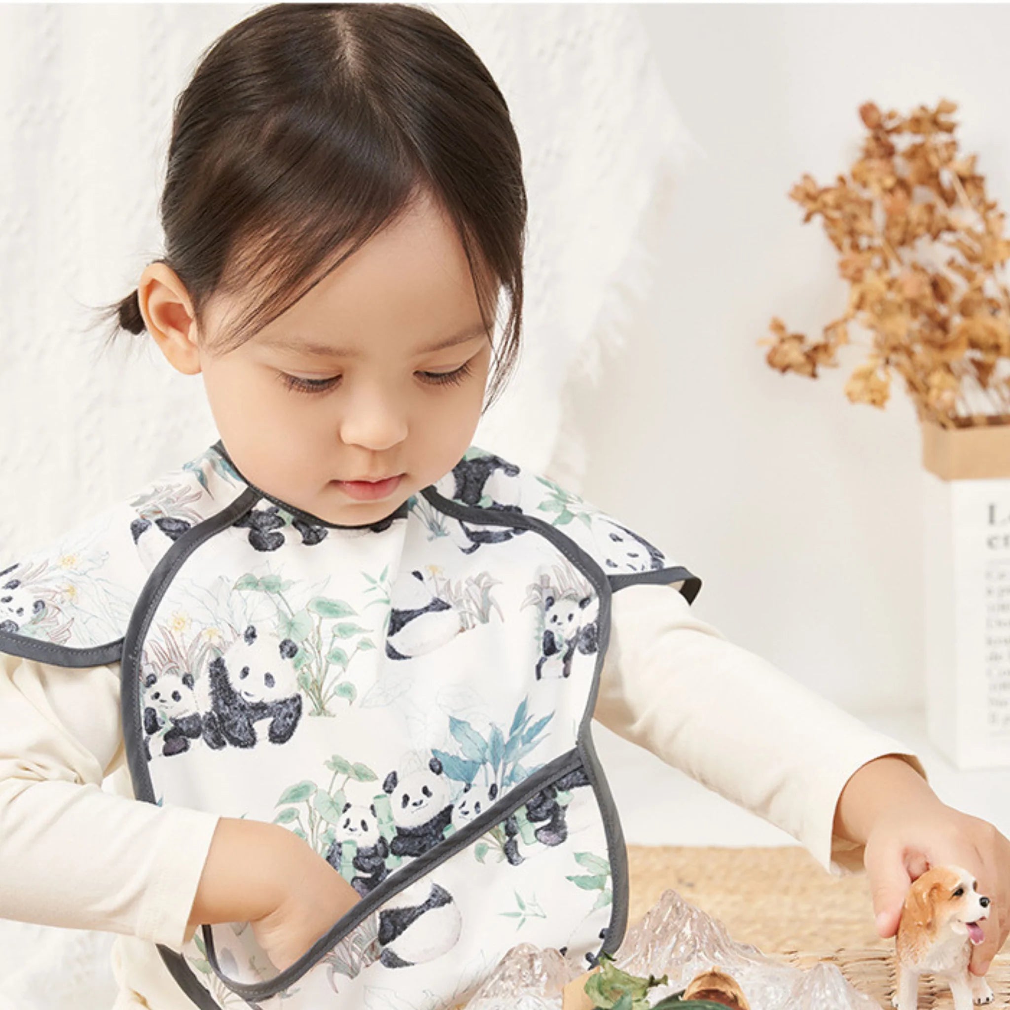 Meet ANN & DAN Waterproof Baby Bib ! Cozy, comfortable & trustworthy. Inspired by nature and art, each piece is made with love, safety, and attention to detail. Waterproof and easy-clean for messy mealtimes and practically weightless and foldable for family travels! Other winning features include a secure back velcro strap, shoulder-sleeve coverage, and a catch-all pocket for food spills. Its unique print designs are patented and made from eco-friendly dyes.