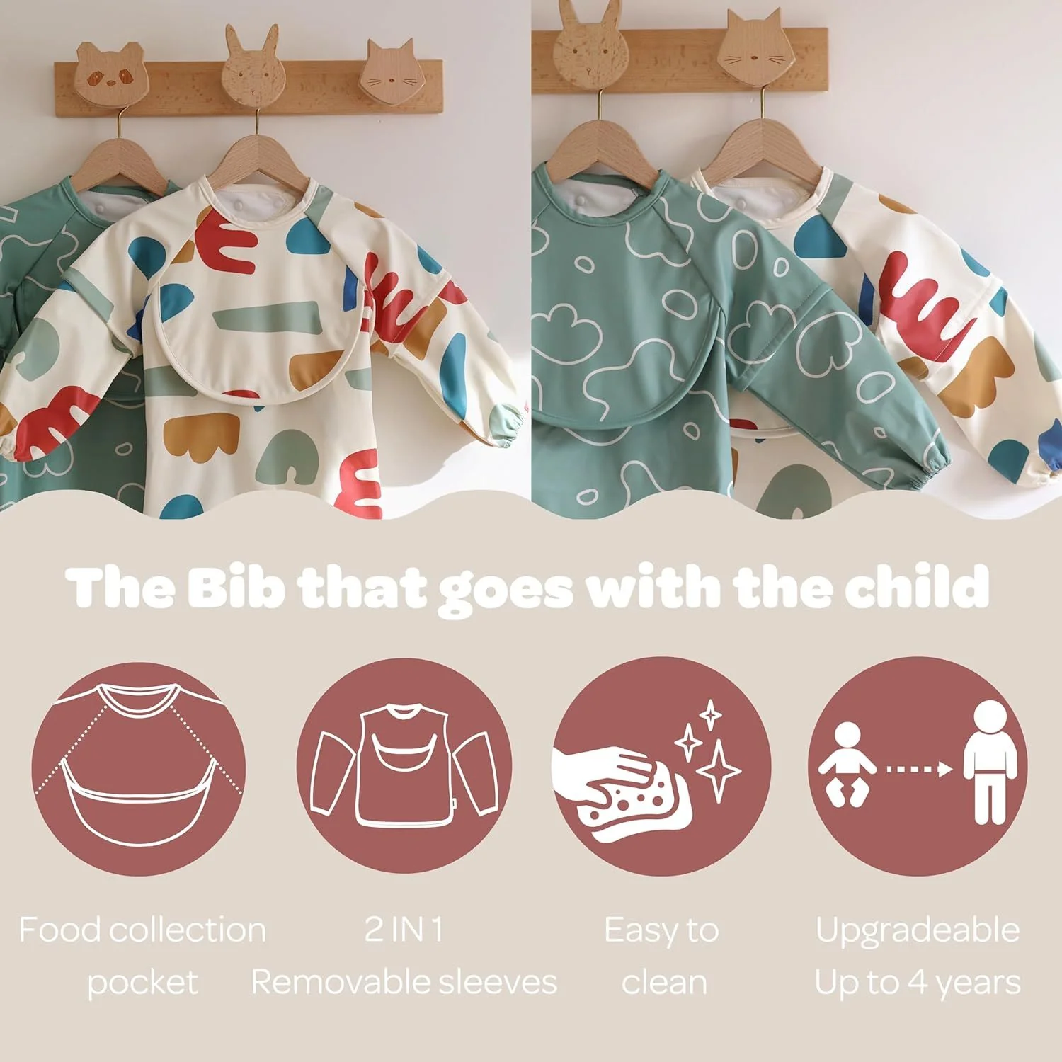 2 in 1 Bib with sleeves that can be removed! No Mess No Stress, perfect for toddler feeding to painting session!
