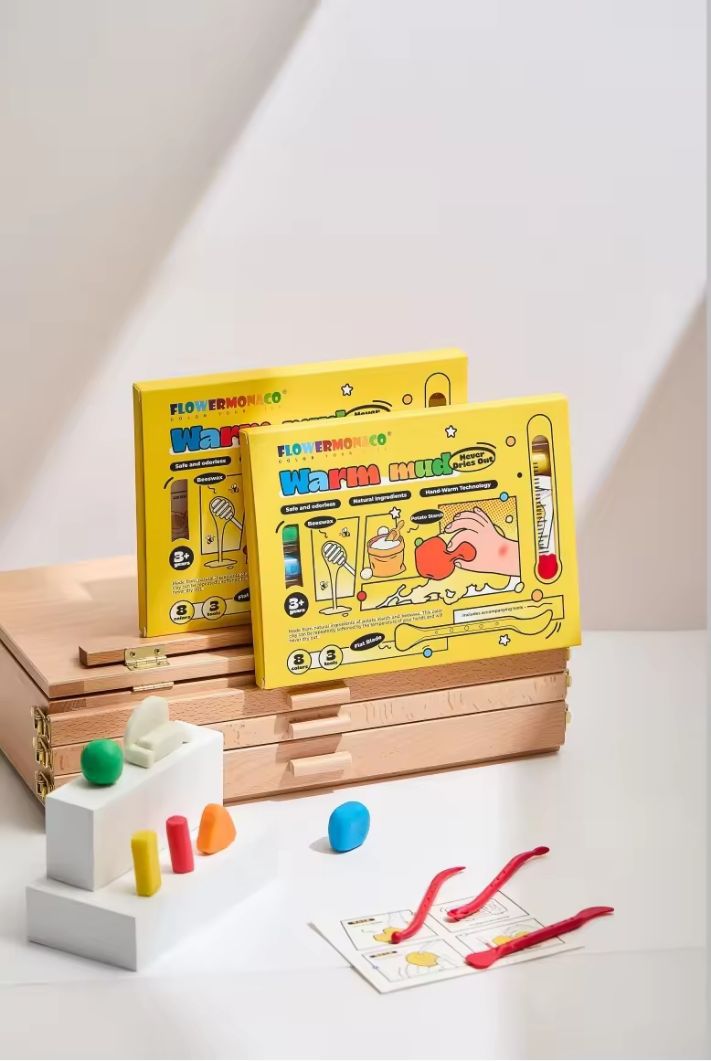 The Flower Monaco Warm Mud (8 Colors) is a baby-safe modeling clay made from potato starch and natural beeswax. Its soft texture becomes even smoother with warmth, never dries out, and can even be sterilized in a microwave—making it a safe, fun, and long-lasting creative material for toddlers.
