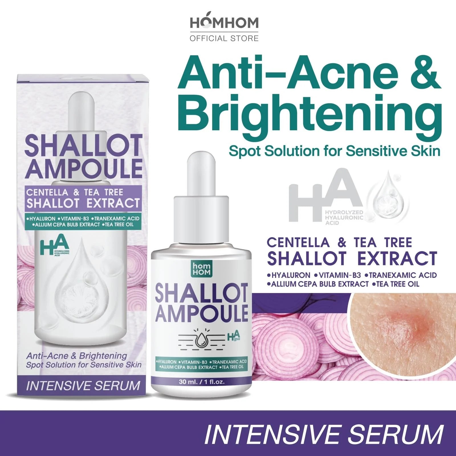 Homhom shallot natural clarifying acne and brightening ampoule 30 ml.