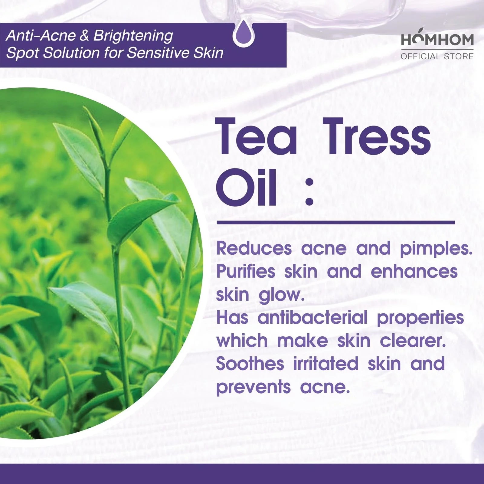 - Tea Tree : Enhances skin's defense system