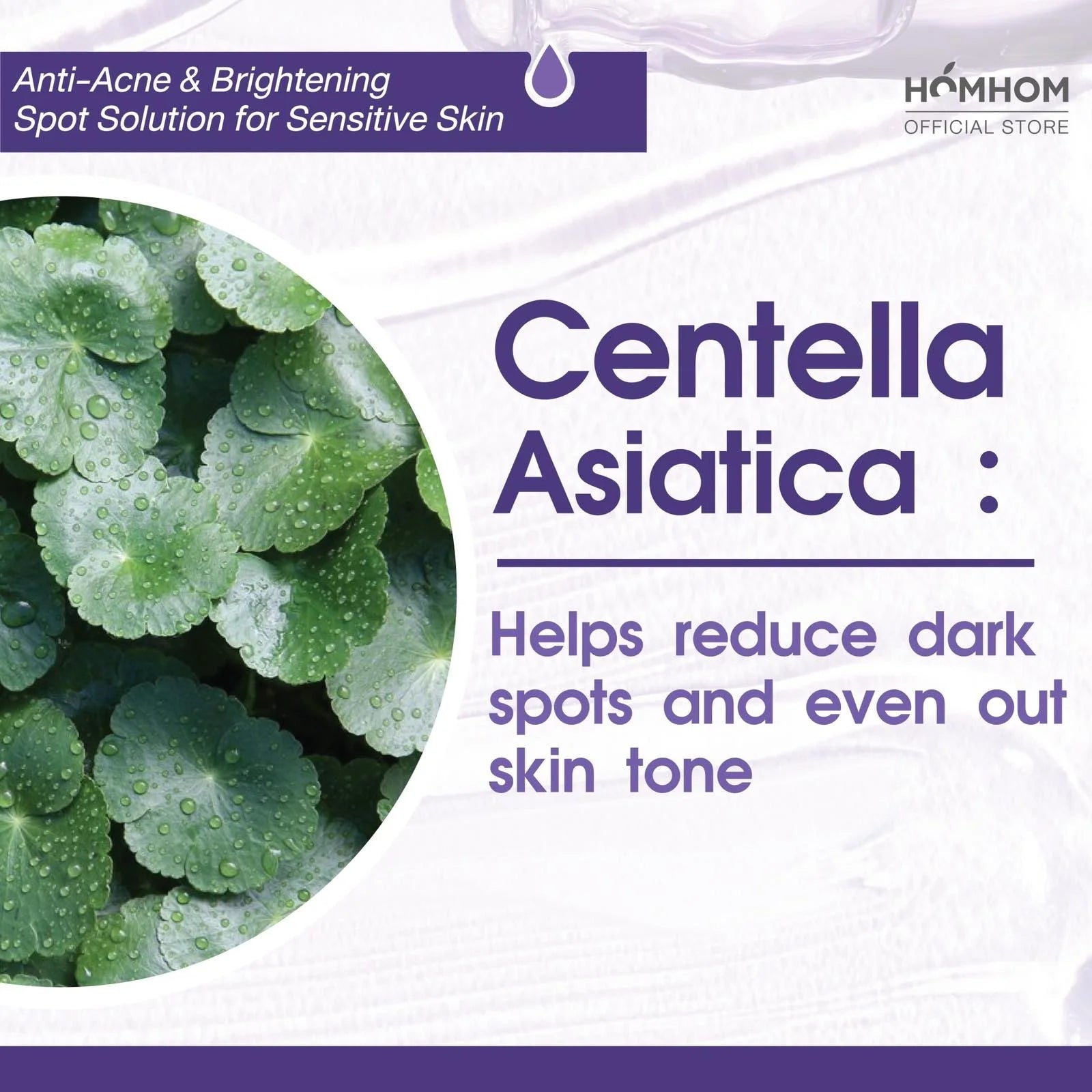 - Centella asiatica : Helps reduce dark spots and even out skin tone