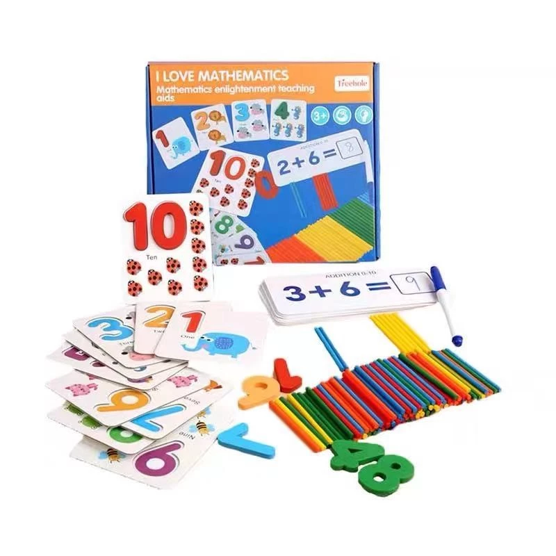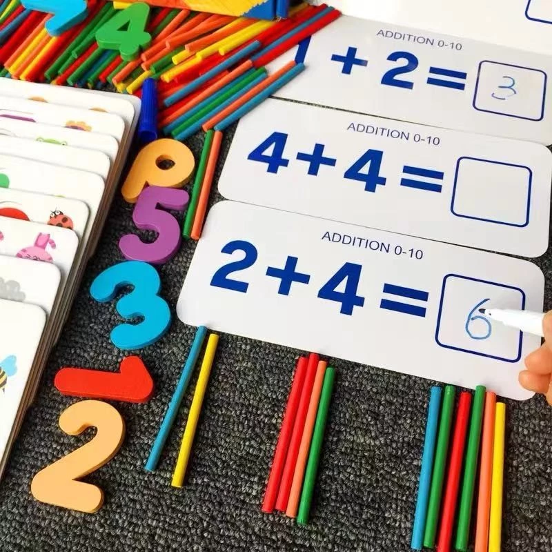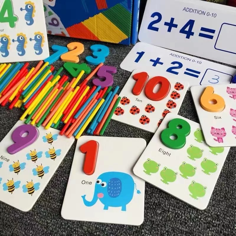 Learning Set:151 pcs intelligence toy set, including 10 number cards, 30 arithmetic cards (double-side), 100 Pcs colored sticks, 10 number blocks (1 to 10) and a pen. Family Activities: Parents can participate in and guide kids, which can help strengthen parent-child communication. Tip: You can use brick numbers or write the answer on the counting card (water pen can be wiped off with a rag ). Warm Gifts: Gift box packaging, upgrade large size toy calculator, perfect gift choice, can help develop children's intelligence, hands-on ability, brain development, logical and counting ability. Safe Material: The card is made of high-quality cardboard, which does not hurt your hands, and the pattern is clear. Natural high-quality wooden, environmentally friendly water paint, odorless, safe for children, delicate feel and not easy to damage. Preschool Toy: Colorful counting rods box help develop numbers and color recognition, learn while playing, children can learn simple math operations more directly with wooden sticks, more easily than with fingers. If you are satisfied with our products, please give us a positive feedback (5 stars) The goods are 100% new, we offer the best products at the most favorable price.