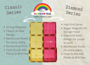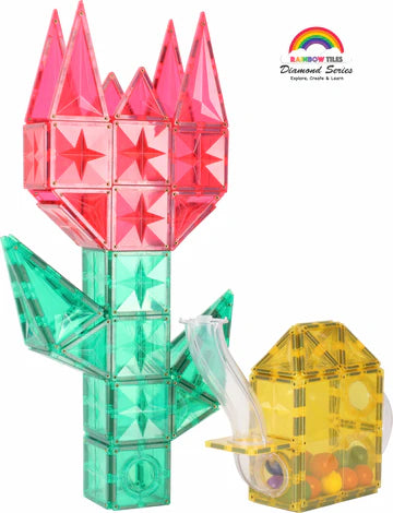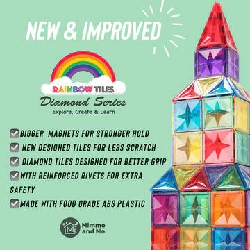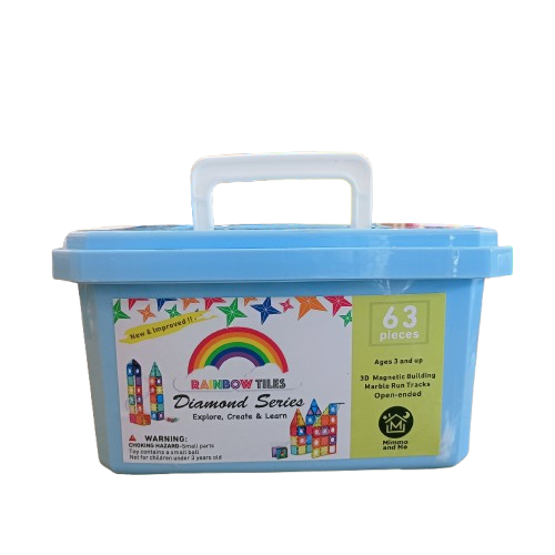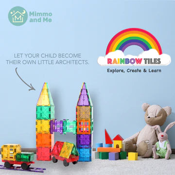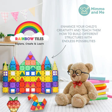 Mimmo and Me Marble Run Race Track brings your magnetic tiles construction to the next level. Our 63pc set includes all the tiles and pieces you need to create a complete marble run race track. This set adds a whole lot of fun to your play sessions. Let your kids enjoy building colorful race tracks and improve their fine motor skills, problem solving skills, designing and planning skills as well as STEM skills. Our Rainbow Marble Run Race Track is also made compatible with our Rainbow Tiles Set so your kids can design a fun and bigger race course.