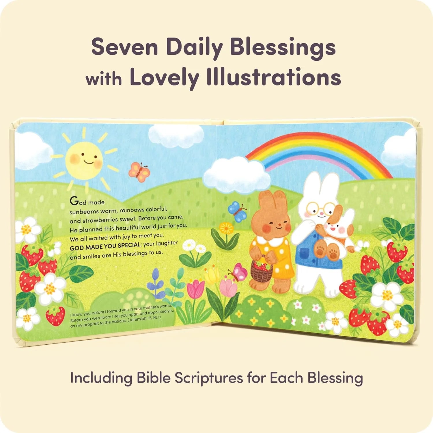 - 7 Blessings: Each page features a heartfelt blessing and Bible scripture for the child's growth in God.